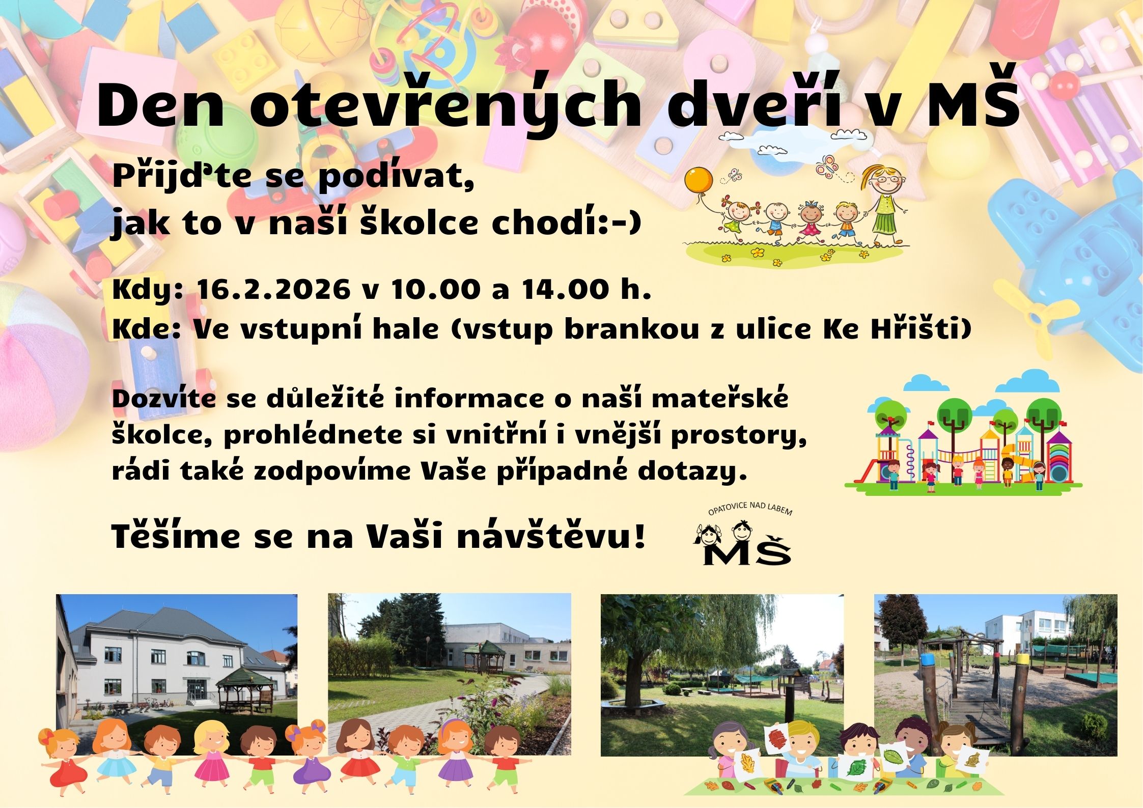 Den otevřených dveří v MŠ Opatovice nad Labem - přijďte se podívat, jak to v naší školce chodí :-)